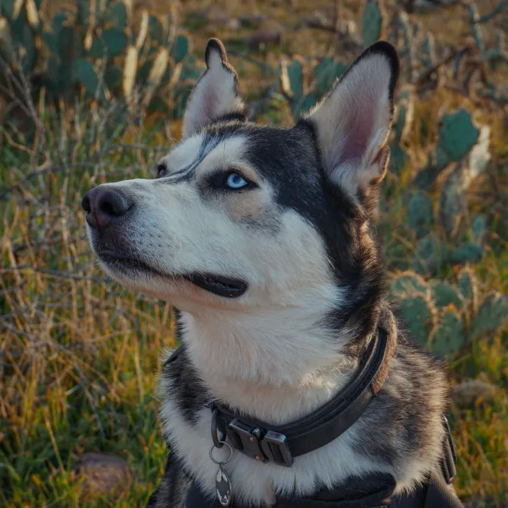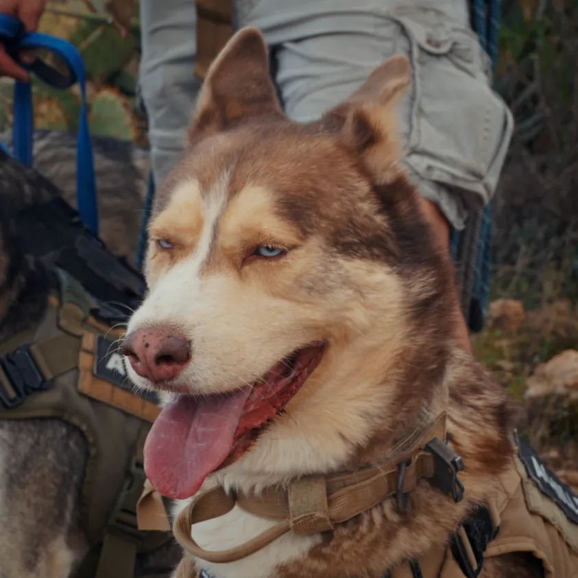 Achilles - Pack leader: loves to swim, short runs alongside the Jeep and adores pets.